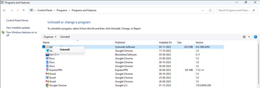Schritt 3:Es erscheint eine Liste mit Apps, in der Sie ASUS Hotkeys suchen und anklicken müssen, und dann auf die Schaltfläche „Deinstallieren“ klicken.