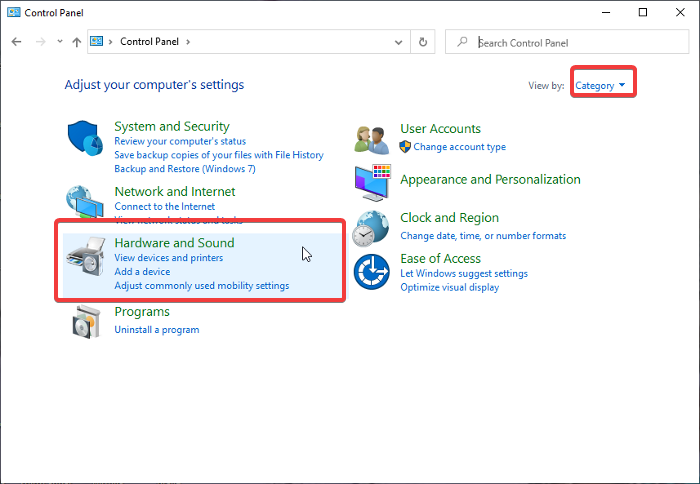 2.Klicken Sie aufHardware und Soundund auswählenKlangauf der nächsten Seite