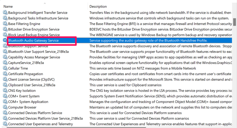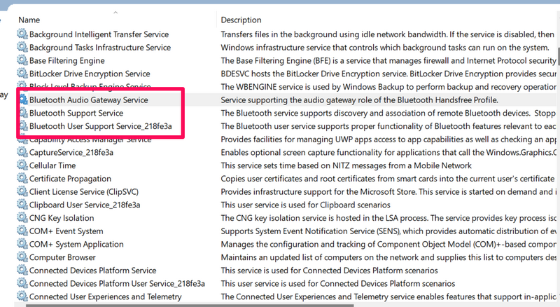 5. Tun Sie dies für alle Bluetooth-Dienstedie Sie auf der Liste finden können.
