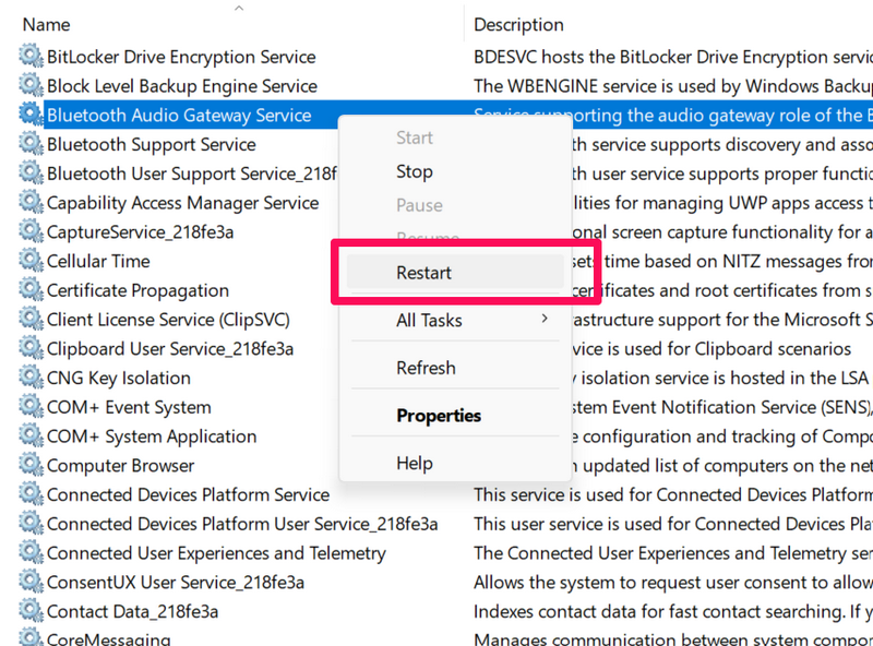 15. Starten Sie die Bluetooth-Dienste in Windows 11 neu