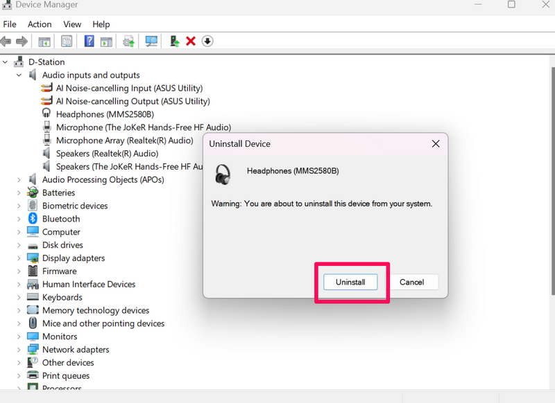 Wenn das Aktualisieren des Audiotreibers Ihrer Bluetooth-Kopfhörer nicht geholfen hat, können Sie versuchen, ihn auf Ihrem Windows 11-PC oder Laptop neu zu installieren. Dadurch werden alle internen Probleme mit dem Treiber behoben und automatisch die neuesten verfügbaren Treiberupdates auf Ihrem Gerät installiert.