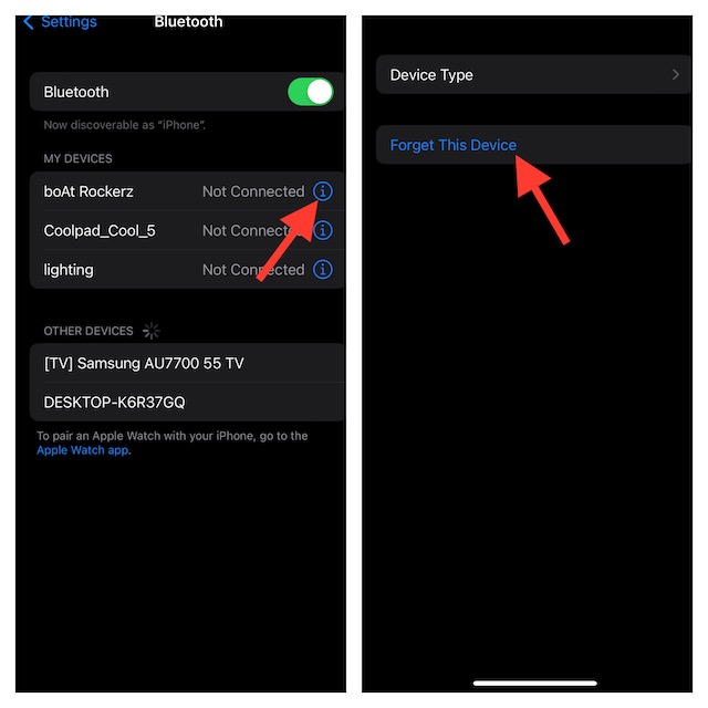 6. Vergessen Sie das Bluetooth-Gerät und stellen Sie die Verbindung zu Ihrem iPhone wieder her