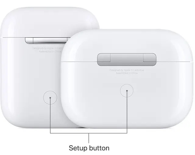 - Das Zurücksetzen von AirPods ist ziemlich einfach. Bei geöffnetem Kabel müssen Sie die Setup-Taste auf der Rückseite des Gehäuses etwa 15 Sekunden lang gedrückt halten, bis die Statusleuchte zunächst gelb und dann weiß zu blinken beginnt.