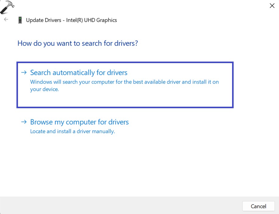 4. Wählen Sie im Fenster „Treiber aktualisieren“ die Option „Automatisch nach Treibern suchen”-Option.
