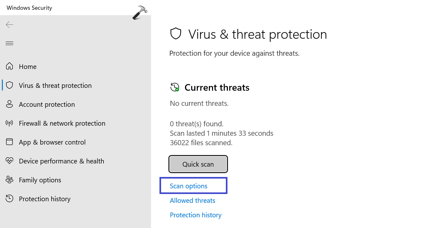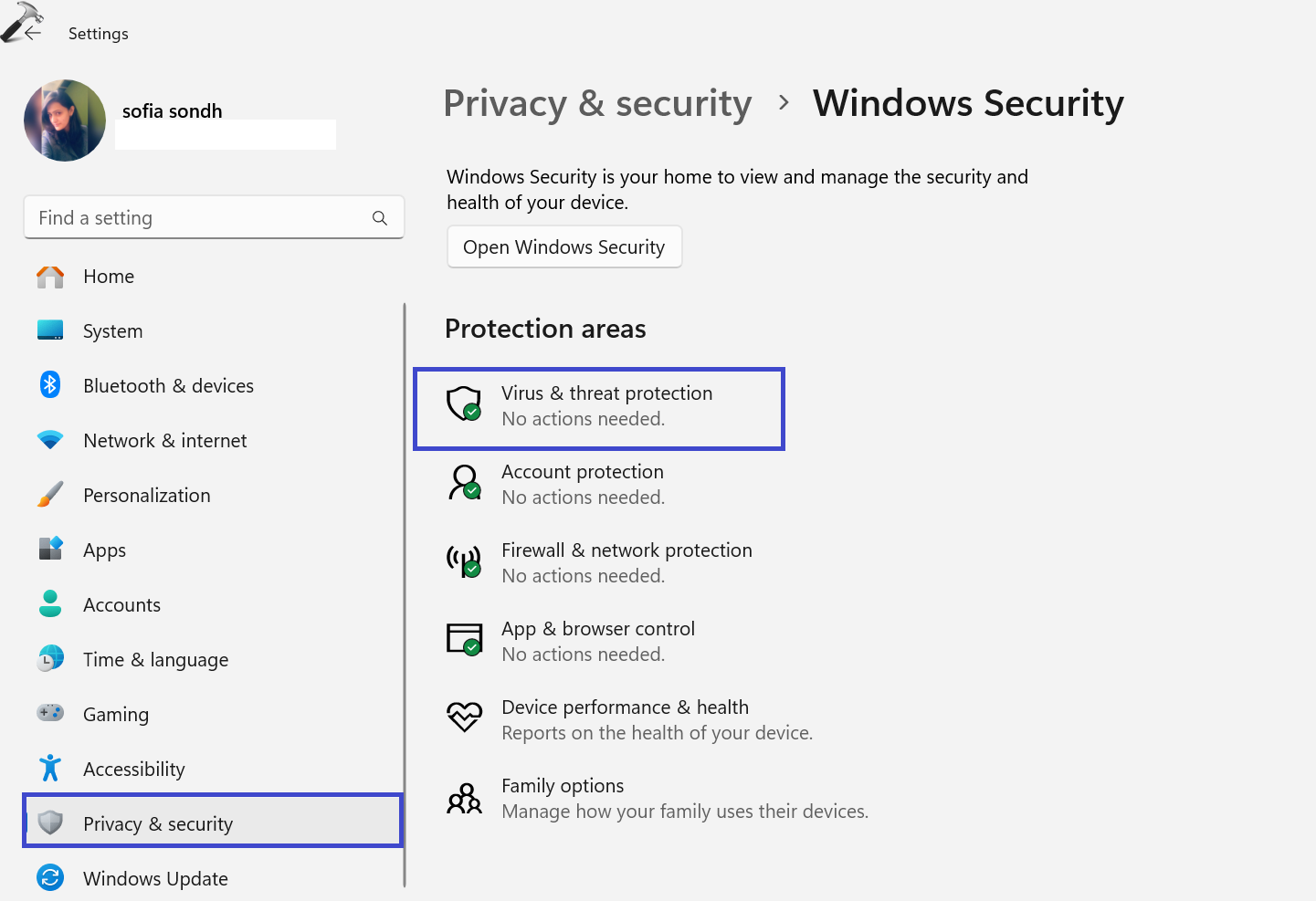 2. Klicken Sie nun auf „Viren- und Bedrohungsschutz”-Option.