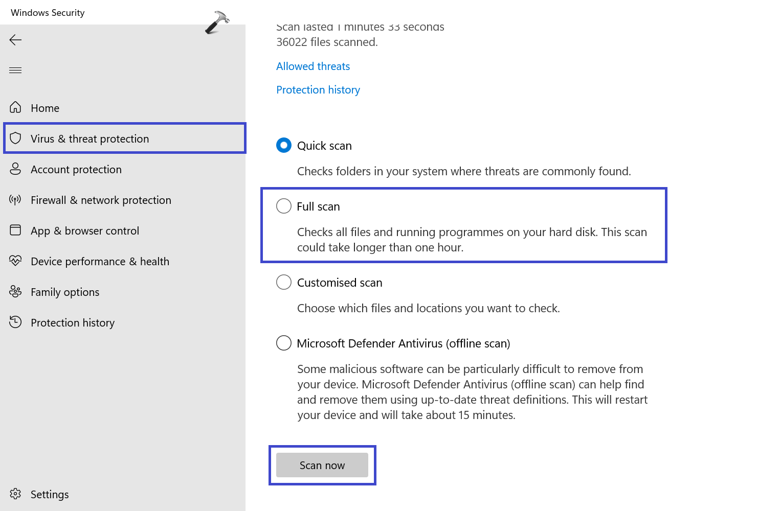 4. Wählen Sie „Vollständiger Scan“Möglichkeit, Ihr System zu überprüfen. Dieser Scan kann je nach den auf Ihrem Gerät gespeicherten Daten einige Zeit dauern.