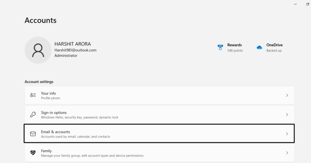 Wenn Sie mit einem lokalen Benutzerkonto an Ihrem Windows 11-Computer angemeldet sind, könnte dies der Grund für dieses Problem sein. Wenn das der Fall ist, empfehlen wir IhnenMelden Sie sich mit einem Microsoft-Konto anund bestätigen Sie anschließend, ob die App auf Ihrem Windows-PC ordnungsgemäß funktioniert. Probieren Sie die folgenden Schritte aus, um zu erfahren, wie Sie sich mit einem Microsoft-Konto bei einem Windows 11-PC anmelden: