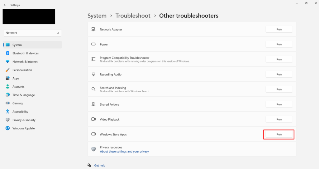 3. Führen Sie die Fehlerbehebung für Windows Store-Apps aus