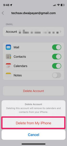 Wenn Sie nun feststellen, dass die Kalender eines bestimmten Kontos nicht funktionieren oder nicht ordnungsgemäß auf Ihrem iPhone synchronisiert werden, können Sie versuchen, das Konto zu entfernen und es dann erneut hinzuzufügen. Dadurch können etwaige Kontosynchronisierungsprobleme für dieses Konto auf Ihrem Gerät behoben werden, wodurch wiederum das Problem behoben wird, dass der Kalender für dieses Konto nicht funktioniert.