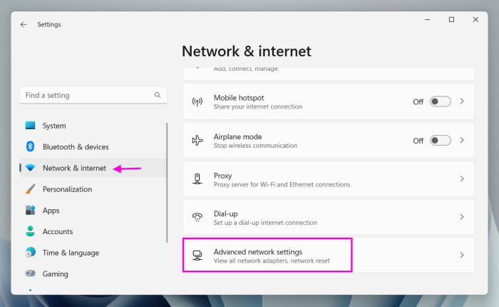 Möglicherweise sind die Netzwerkeinstellungen Ihres Windows 11-PCs falsch konfiguriert, weshalb diese Unannehmlichkeiten auftreten. Um dies sicherzustellen, empfehlen wir Ihnen daherSetzen Sie die Netzwerkeinstellungen Ihres Windows 11-Systems zurückindem Sie die unten aufgeführten Schritte befolgen: