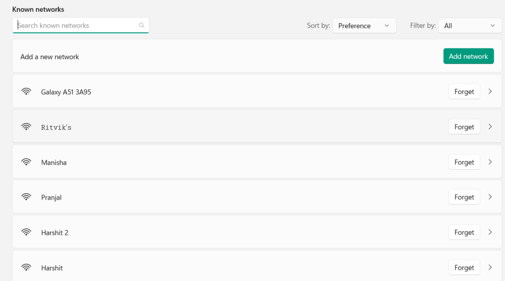 3.ImVerwalten Sie bekannte NetzwerkeSuchen Sie im Abschnitt nach dem Netzwerk, mit dem Sie Probleme haben.