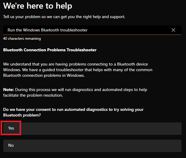 5.Es wird das geöffnetHolen Sie sich HilfeSeite. Geben Sie auf der Seite Ihr Einverständnis zum Ausführen der Fehlerbehebung, indem Sie auf klickenJaTaste.