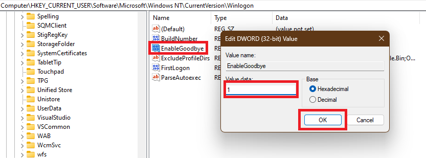 HKEY_CURRENT_USERSoftwareMicrosoftWindows NTCurrentVersionWinlogon3.WählenAktivierenAuf Wiedersehen, ändern Sie dieWertdatenZu1, klicken Sie aufOKKlicken Sie auf die Schaltfläche und starten Sie Ihren Computer neu.