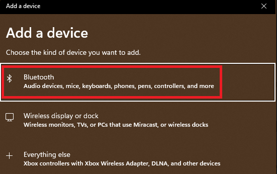 3.Wählen Sie dieBluetoothOption im Gerätetyp und Ihr PC beginnt mit der Suche nach verfügbaren Geräten.