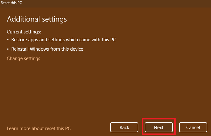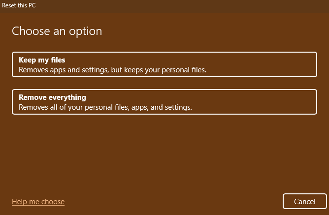 Das Zurücksetzen von Windows kann möglicherweise die dynamische Sperre in Windows 11 beheben. Dies sollte jedoch als letzter Ausweg betrachtet werden, da es eine Neuinstallation des Betriebssystems und das Löschen Ihrer persönlichen Dateien und Anwendungen erfordert. Bevor Sie mit einem Windows-Reset fortfahren, ist es wichtig, Ihre Daten zu sichern.