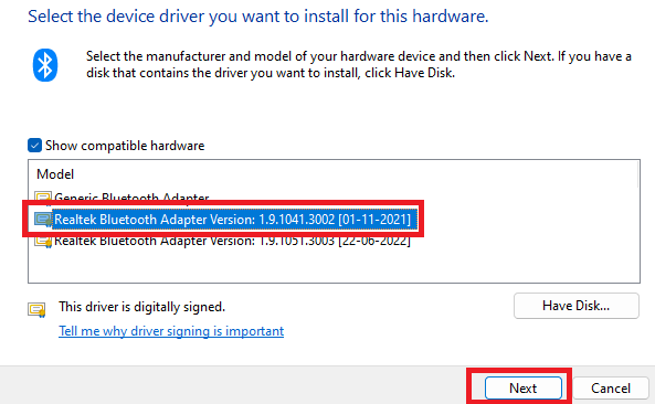 7. Installieren Sie die Bluetooth-Treiber erneut