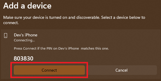6.Klicken Sie zur Bestätigung aufVerbindenTaste auf Ihrem Computer, um das Telefon zu koppeln.
