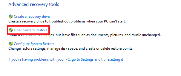 Control PanelAll Control Panel ItemsRecovery2.Klicken Sie in der Wiederherstellung aufÖffnen Sie die Systemwiederherstellung.