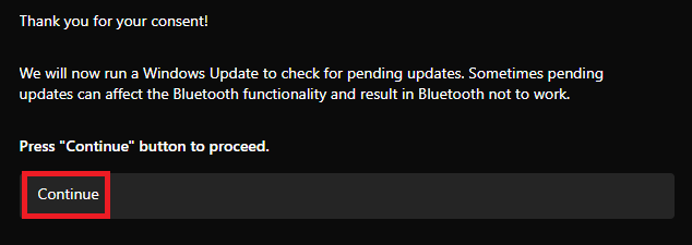 6.Nachdem Sie die Einwilligung erteilt haben, klicken Sie aufWeitermachenKlicken Sie auf die Schaltfläche, um den Vorgang zu starten, und fahren Sie mit den Anweisungen auf dem Bildschirm fort.