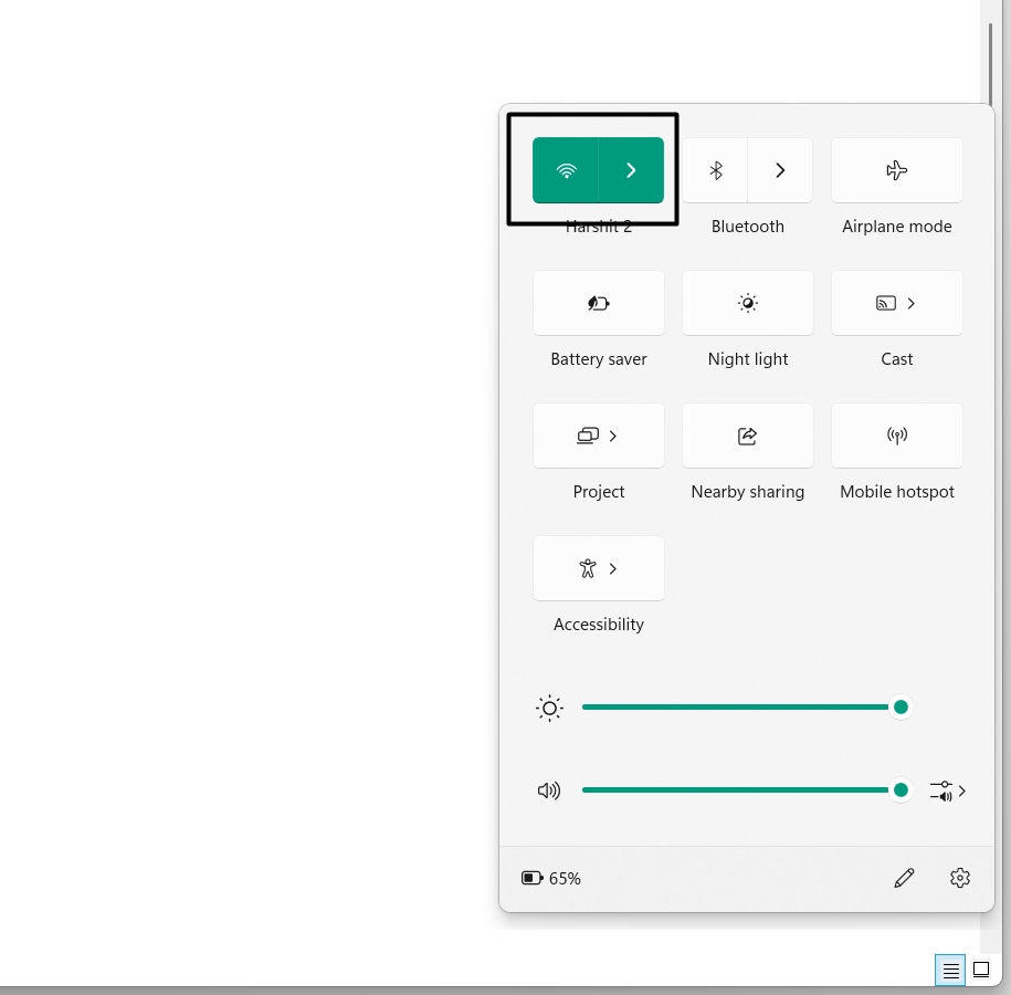 2.Klicken Sie aufW-lanSymbol im Bereich „Schnelleinstellungen“, um die Wi-Fi-Konnektivität auf Ihrem PC zu deaktivieren.