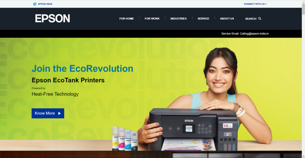 1.Gehe zumEpson-Websitein Ihrem Browser und wählen Sie das ausDruckerOption unter derUnterstützungAbschnitt.