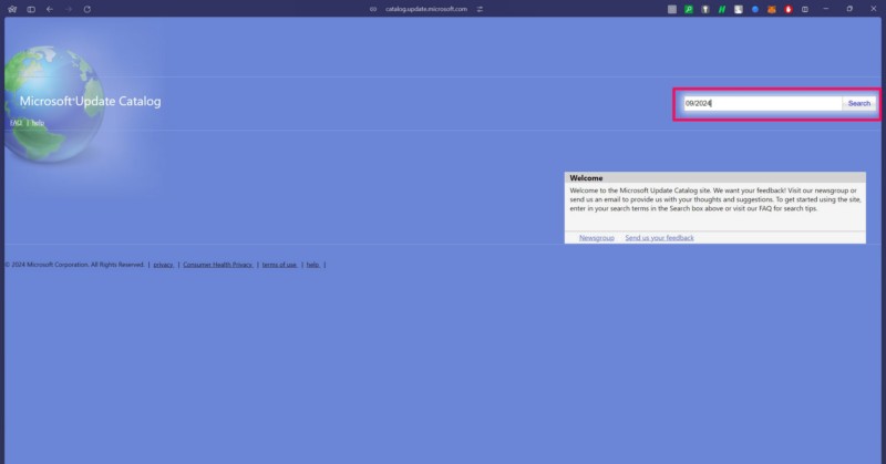2.Öffnen Sie Ihren bevorzugten Webbrowser und navigieren Sie zur Microsoft Update Catalog-Website. Das können Sie auchBenutzen Sie diesen Linkum die Seite direkt mit Ihrem Standardbrowser zu öffnen.