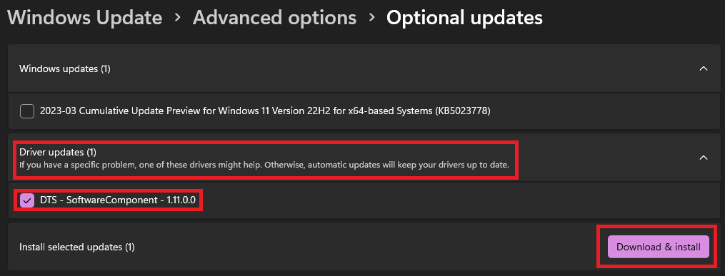 5.Klicken Sie aufTreiberaktualisieren, wählen Sie die verfügbaren Updates aus und drücken Sie die TasteHerunterladen und installierenTaste.