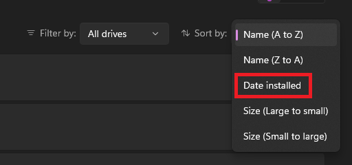 4.Stellen Sie die einSortieren nachOption zuDatum der Installation,und deinstallieren Sie die Software aus der Liste, indem Sie auf die drei Punkte neben ihrem Namen klicken.