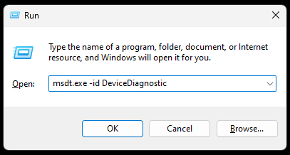 1.DrückenWin+R,Typmsdt.exe -id DeviceDiagnosticund drücken Sie die TasteeingebenSchlüssel.