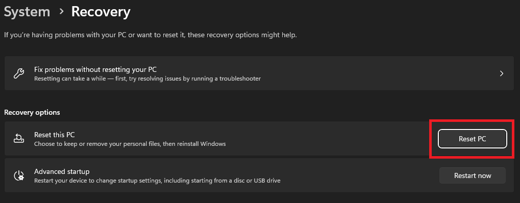 Durch einen System-Reset kann dieses Problem behoben werden. Erstellen Sie vorher eine Sicherungskopie Ihrer Dateien, Fotos und anderen Medien. Damit Ihre wertvollen Daten sicher sind, falls etwas schief geht, beachten Sie bitte, dass Sie Ihren PC nach der Neuinstallation von Grund auf neu einrichten müssen. Sobald Sie ein Backup von allem erstellt haben, können Sie Windows 11 wie folgt auf Ihrem PC neu installieren.