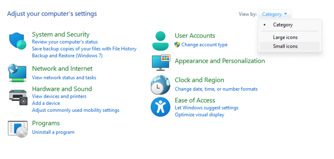 Schritt 2:Nachdem Sie „Als kleine Symbole anzeigen“ ausgewählt haben, klicken Sie auf das Menü „Energieoptionen“.