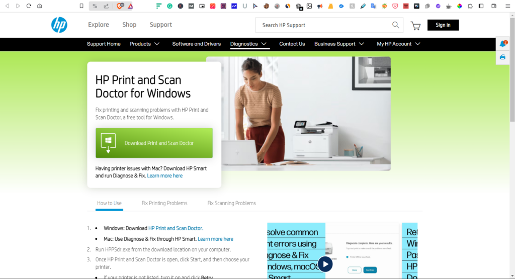1.Gehe zumHP Print and Scan Doctoroffizielle Download-Seite für Windows in Ihrem Browser.