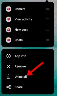 Schritt 1:Drücken Sie lange auf das Instagram-App-Symbol und wählen Sie Deinstallieren.