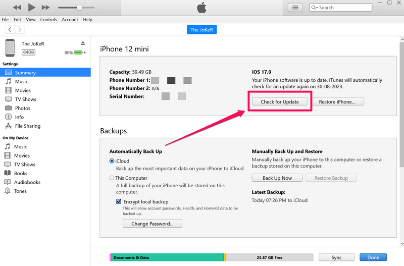 Auf diese Weise können Sie im Grunde genommen iTunes verwenden, um Ihr iPhone auf iOS 17 zu aktualisieren, um die Phase „Update angefordert“ zu umgehen und dabei das besagte Problem zu beheben.
