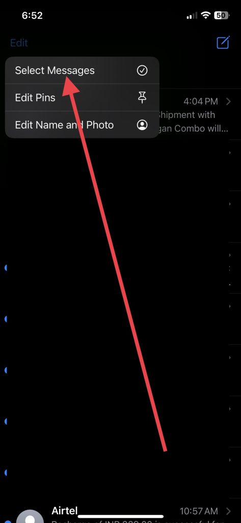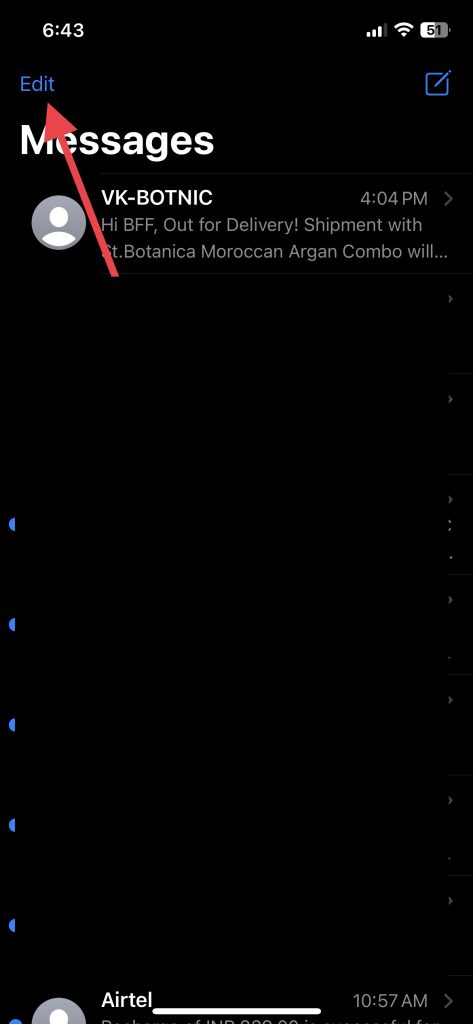 1.Starten Sie dieNachrichtenApp und HitBearbeitenin der oberen linken Ecke