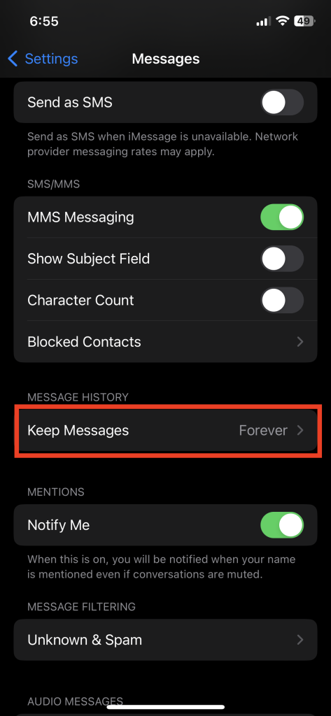 10. Leeren Sie ältere Nachrichten