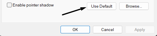 3.Navigieren Sie dann zuHinweiseAbschnitt und klicken Sie aufStandard verwendenOption zum Zurücksetzen der Mauseinstellungen.