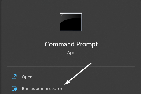 1.Öffnen Sie zunächst dieWindows-Suchfeld, TypEingabeaufforderung, und wählen Sie das ausAls Administrator ausführenOption zum Öffnen mit Administratorrechten.