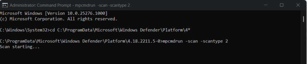 cd C:ProgramDataMicrosoftWindows DefenderPlatform4*