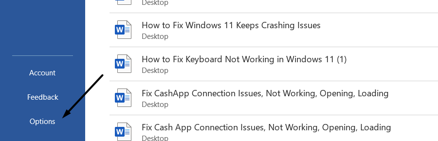 2.WählenOptionenaus dem Menü auf der linken Seite und wählen Sie dann ausAdd-InsOption zum Öffnen derAdd-InsAbschnitt.