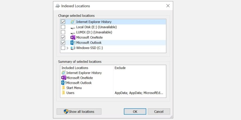 4. Überprüfen Sie die Suchindizierung und Speicherorte in Microsoft Outlook