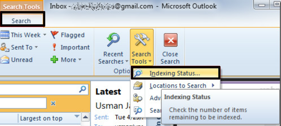 Wenn Sie eine bestimmte E-Mail in den Suchergebnissen nicht finden können, besteht die Möglichkeit, dass die E-Mail noch nicht indiziert wurde, was zu diesem Problem führt. Vor diesem Hintergrund empfehlen wir IhnenÜberprüfen Sie den Indizierungsstatus von Microsoft Outlookum zu wissen, ob die Indizierung funktioniert. Lassen Sie uns dasselbe wissen, indem Sie die folgenden Schritte ausführen:
