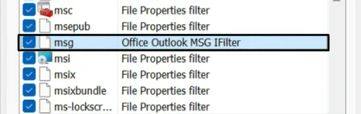 3.ImDateitypenAbschnitt, suchen Sie nachNachrichtWählen Sie die Erweiterung aus und stellen Sie sicher, dass das Kontrollkästchen daneben aktiviert ist.