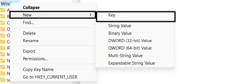 3.Klicken Sie mit der rechten Maustaste auf den angegebenen Schlüssel und wählen Sie den ausNeu > SchlüsselOption und benennen Sie dann den neuen SchlüsselWindows-Suche.