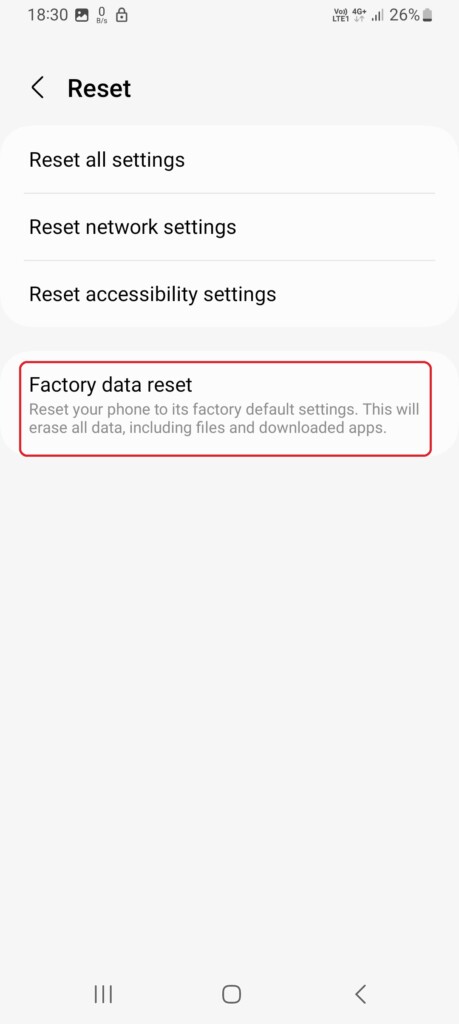 Wenn keine der oben genannten Optionen funktioniert hat, kann das Problem möglicherweise durch Zurücksetzen Ihrer Geräte behoben werden. Da wir bereits zahlreiche mögliche Korrekturen ausprobiert haben und das Problem weiterhin besteht, besteht die Möglichkeit, dass eine beschädigte Betriebssystemdatei dieses Problem verursacht. Überprüfen Sie vor dem Zurücksetzen, ob das Problem bei Ihrem Telefon oder dem Computer liegt.