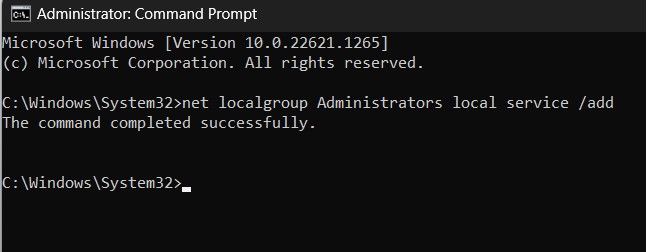 2.Schreiben Sie den folgenden Befehl und drücken Sie die Eingabetaste, um ihn auszuführen. Wenn der Befehl erfolgreich ausgeführt wird, erhält der aktuelle Benutzer Administratorrechte.