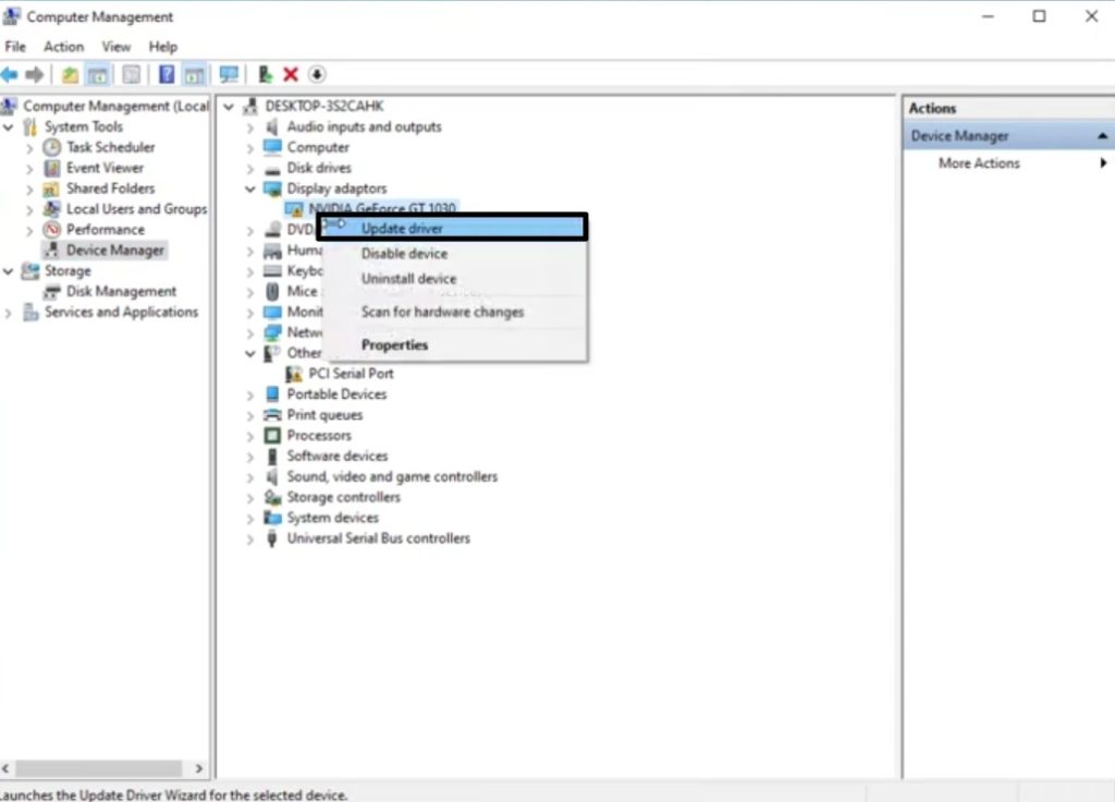 4.Öffnen Sie beim nächsten Start den Geräte-Manager erneut, erweitern Sie „Anzeigeadapter“, klicken Sie mit der rechten Maustaste auf Ihren NVIDIA-Treiber und wählen Sie „Treiber aktualisieren.