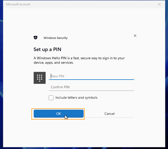 Schritt 4:Geben Sie die neue PIN in die beiden Textfelder auf dem Bildschirm „PIN einrichten“ ein und klicken Sie dann aufOK.
