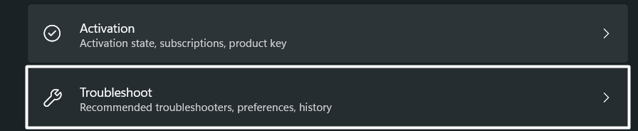 1.Drücken Sie die TasteWindows + ITastenkombination zum Öffnen desEinstellungen-Appund navigieren Sie zuFehlerbehebungAbschnitt.