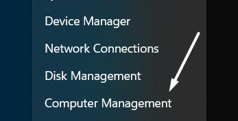 1.Klicken Sie zunächst mit der rechten Maustaste aufWindows-Logo-Symbolin der Taskleiste Ihres Systems und wählen Sie das ausComputermanagementOption aus dem Popup.